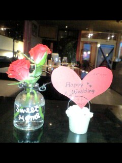 結婚のお祝いのイメージでテーブルを飾ってみました。
